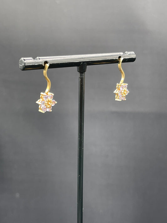 1 Carat Natural Tanzanite Floral 14k Yellow Gold Dangle Earrings