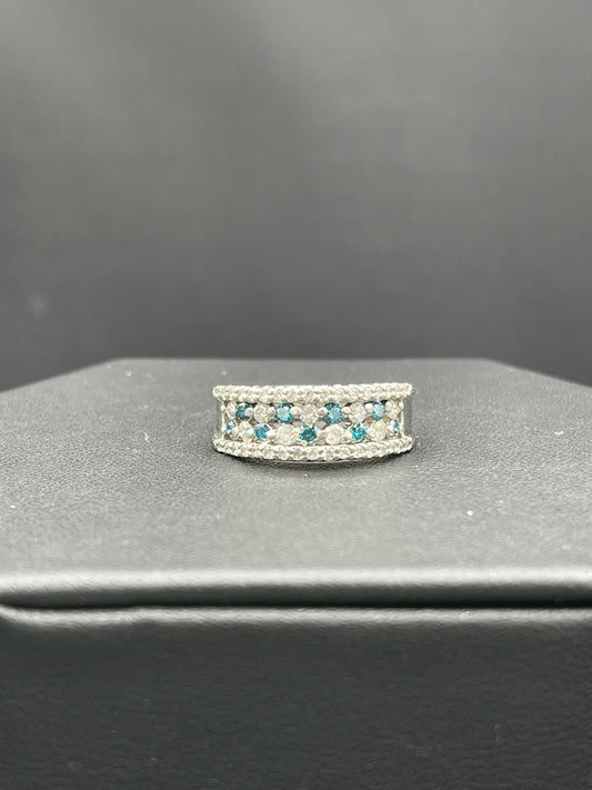 0.95 Natural Blue & White Diamond Platinum Wedding Band Ring (Size 8)