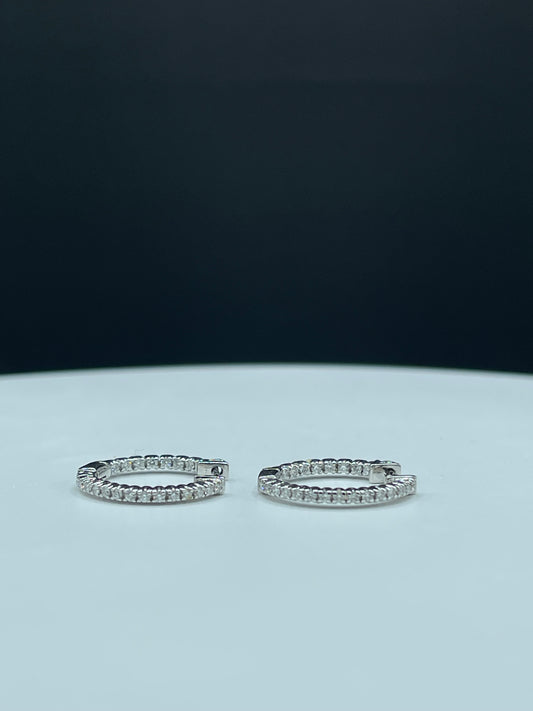 0.60 Carat Natural Diamond 18k White Gold Huggie Hoop Earrings