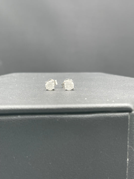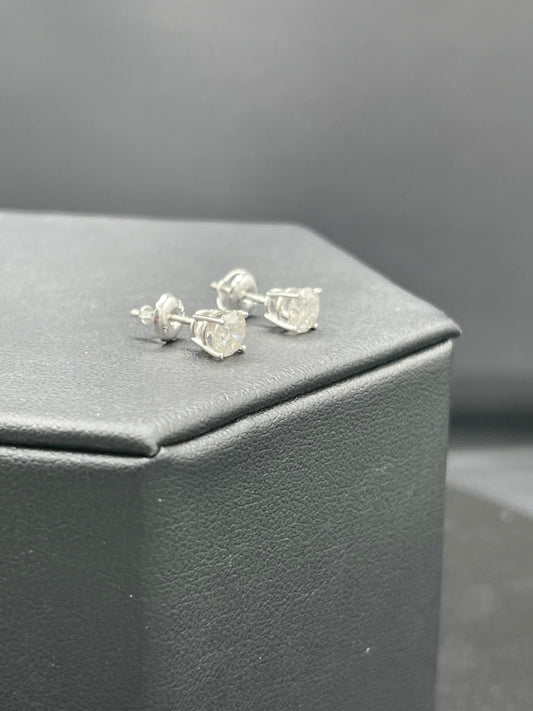 1 Carat Natural White Diamond 14k White Gold Stud Earrings
