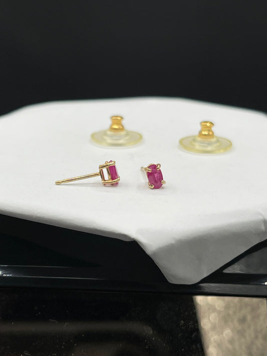 0.66 Carat Natural Ruby 14K Yellow Gold Stud Earrings