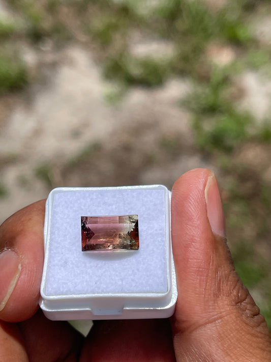 4.97 Carat Natural Bi Color Tourmaline Turtle Back Custom Cut Gemstone, Nigeria Origin - Unique Pink & Yellow with Green Flashes