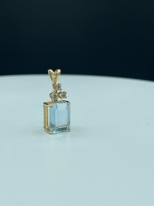4.64 Carat Natural Aquamarine & Diamond 14k Yellow Gold Pendant