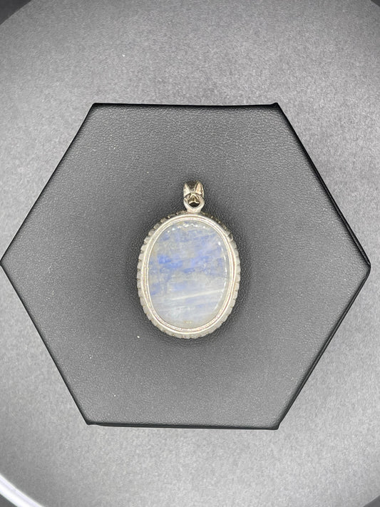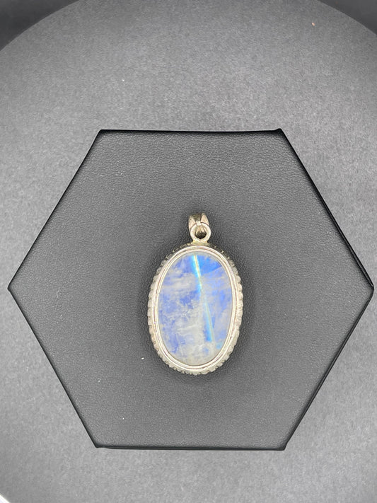 42.74 Carat Natural Rainbow Moonstone Sterling Silver Pendant