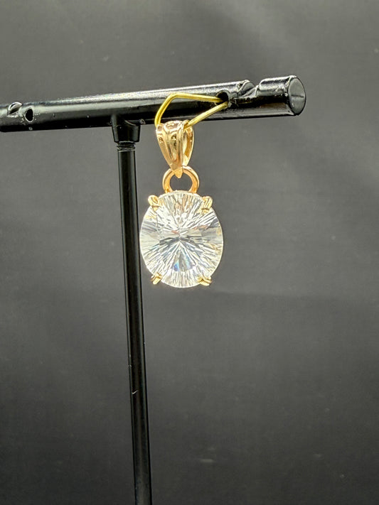 5.11 Carat Natural White Topaz 14k Yellow Gold Pendant | Fantasy Lasercut