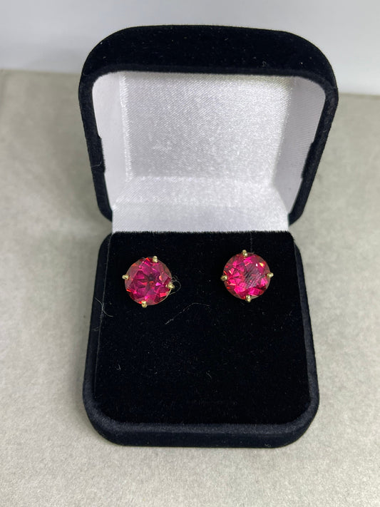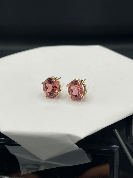 5.90 Carat Natural Rubellite Pink Tourmaline 14k Yellow Gold Earrings