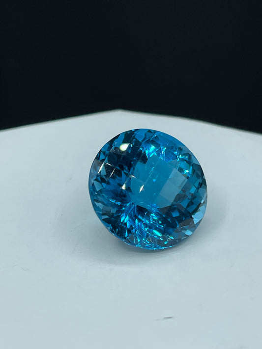 68.43 Carat Super Swiss Blue Topaz Round Cut Loose Gemstone (24.86 x 24.86 x 17.53 MM)
