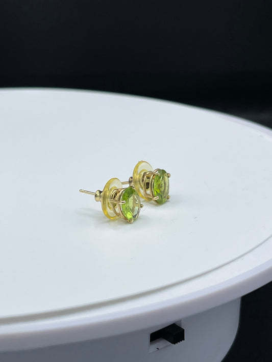 6 Carat Natural Peridot 14k Yellow Gold Stud Earrings