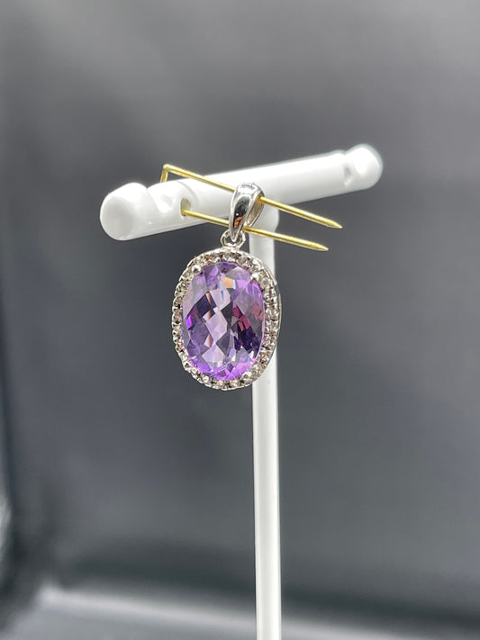 6.50 Carat Oval Amethyst & White Topaz Sterling Silver Pendant