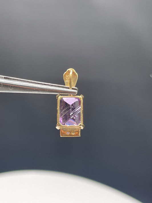 Elegant Laser Cut Natural Amethyst & Diamond 14k Yellow Gold Pendant - 3.20 Carats