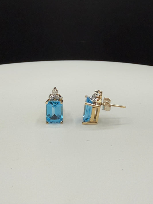 Elegant Blue Topaz & Diamond Earrings in Solid 14k Yellow Gold