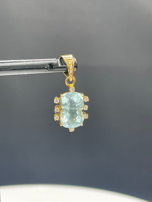 Elegant 5.43 CT Natural Aquamarine & Diamond 18K Yellow Gold Pendant