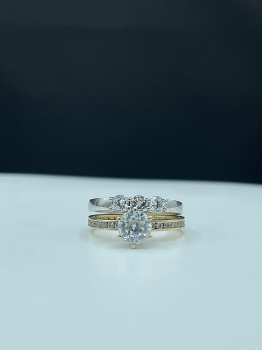 Elegant Cubic Zirconia 14k Yellow + White Gold Engagement Ring + Wedding Band Set (Size 8.25)