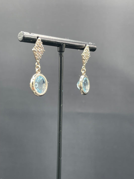 Custom Blue Topaz & Diamond 14k White Gold Dangle Earrings