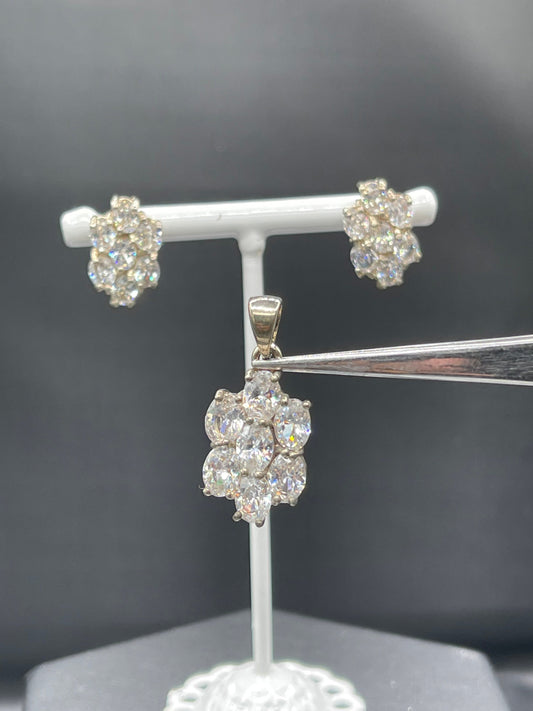 Cubic Zirconia Sterling Silver Pendant & Earring Set