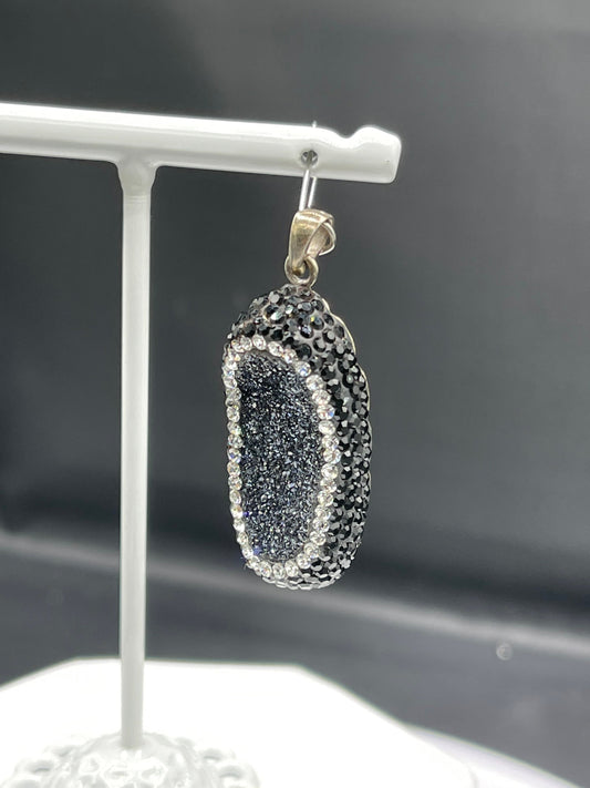 Druzy Quartz & Swarovski Crystal Sterling Silver Pendant