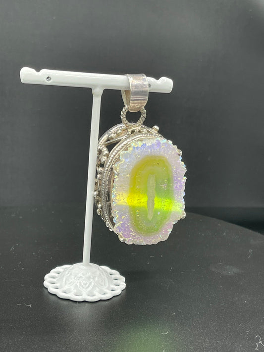 Druzy Quartz Color Shifting Sterling Silver Pendant