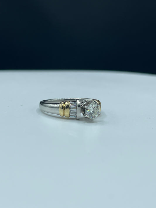 1.06 Carat Natural Diamond Platinum & 18k Gold Engagement Ring (Size 7)