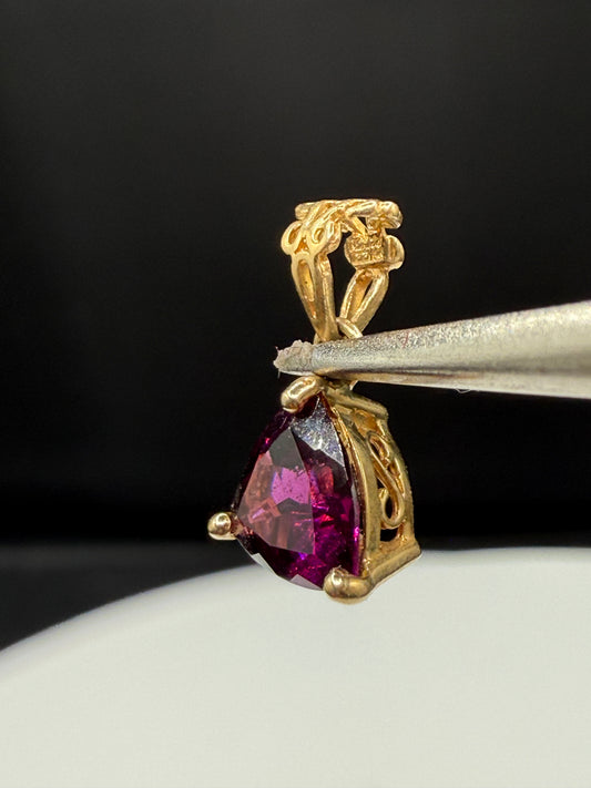 1.55 Carat Natural Grape Garnet Trillion Cut Pendant – 14K Yellow Gold
