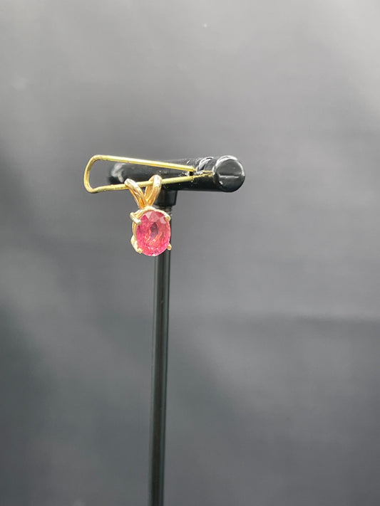 1.10 Carat Natural Rubellite Tourmaline 14k Yellow Gold Pendant