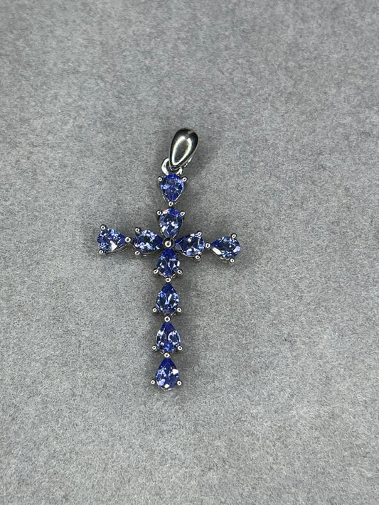 1.51 Carat Tanzanite Cross Sterling Silver Pendant