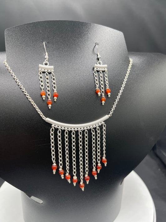 Handmade Natural Carnelian Sterling Silver Adjustable Necklace & Dangle Earring Set (15-25-16-25 inches)