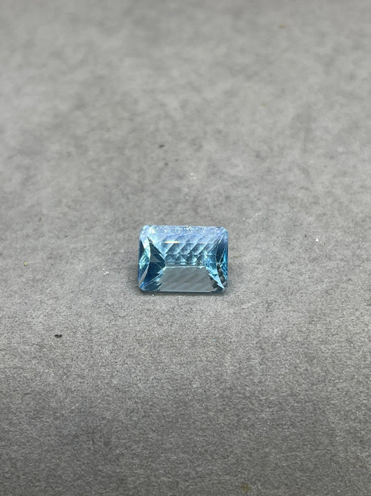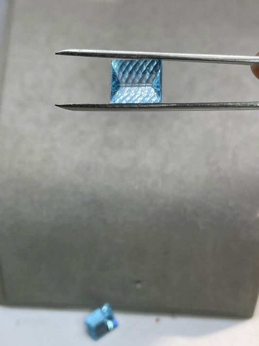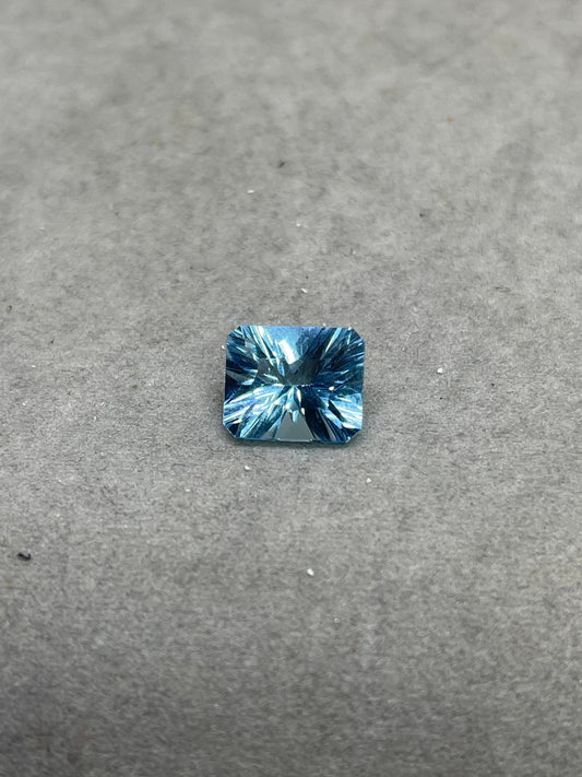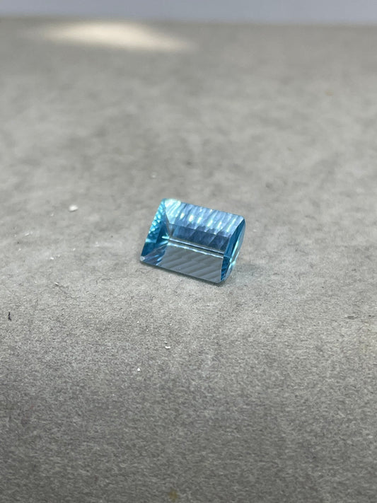 Laser Concave Cut Swiss Blue Topaz 12x10x7 Emerald Cut Loose Gemstone