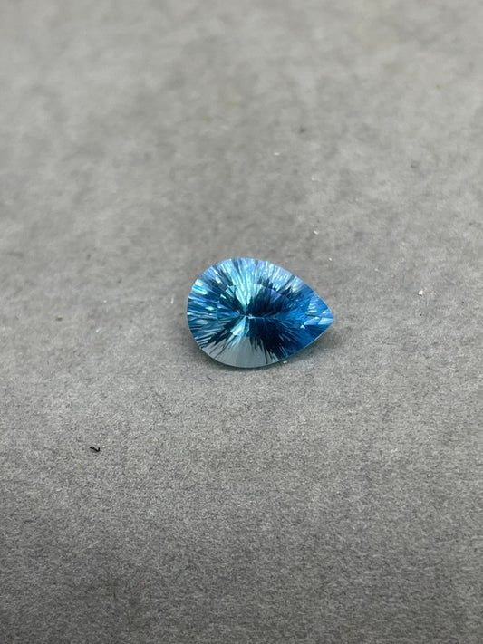 Laser Concave Cut Swiss Blue Topaz 16x12x8 Pear Cut Loose Gemstone