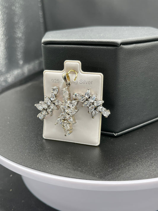 Marquise Cut Cubic Zirconia Sterling Silver Pendant & Earring Set