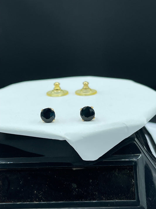 Midnight Sapphire 14K Yellow Gold Stud Earrings