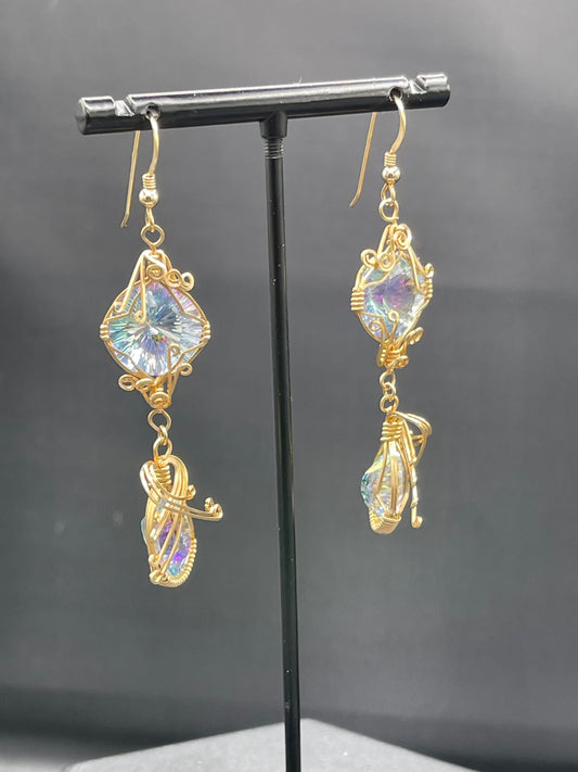Mercury Mystic Topaz 14k Gold Filled Wire Wrapped Dangle Earrings