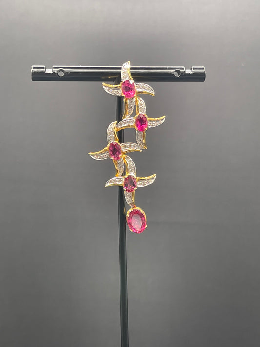 Natural 4.55 Carat Rubellite Tourmaline & Diamond 18k Yellow + White Gold Pendant