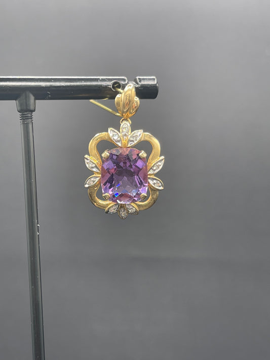 Natural Amethyst & Diamond 14k Yellow Gold Pendant