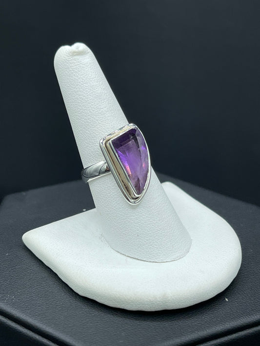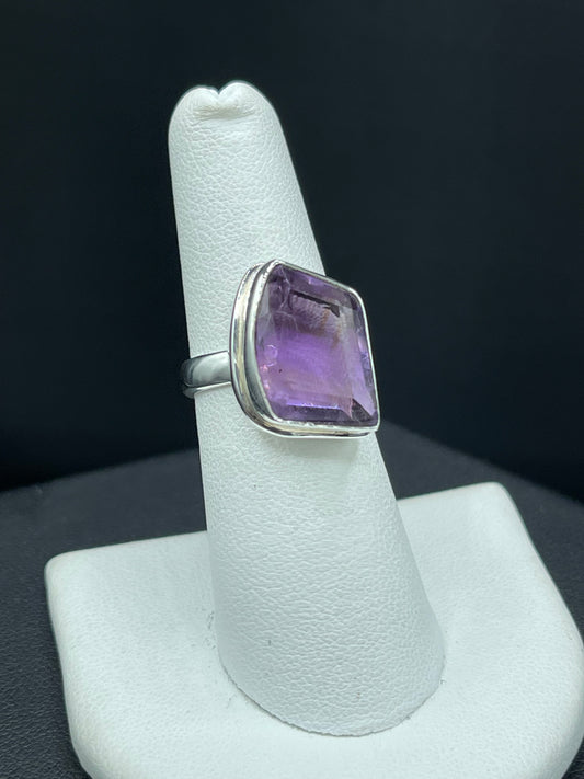 Natural Amethyst Fancy Cut Sterling Silver Ring (Size 8)