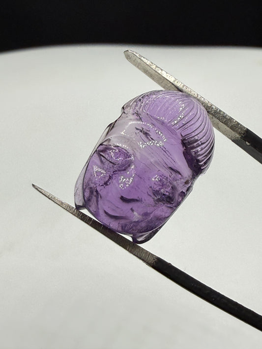 Natural Amethyst Carved Buddha – 15.39 Carat Loose Gemstone | 17.24 x 11.88 MM
