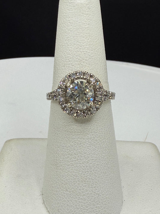 1.92 Carat Natural Diamond Old European Cut 18k White Gold Engagement Ring (Size 6.5)