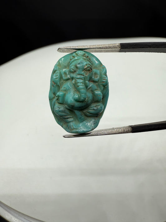 10.31 Carat Natural Turquoise Lord Ganesh Carving | Hand-Carved Gemstone | 20.35x15.53mm
