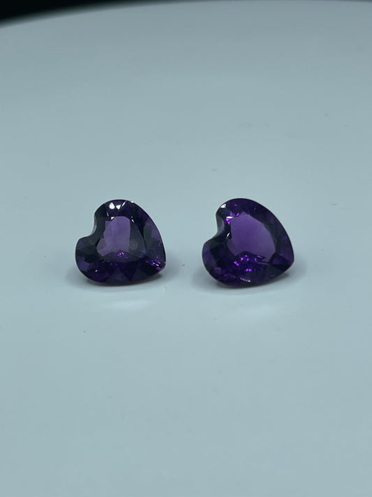 10.34 Carat Natural Zambian Amethyst Heart Cut Matching Loose Gemstones (12x12x7 MM)