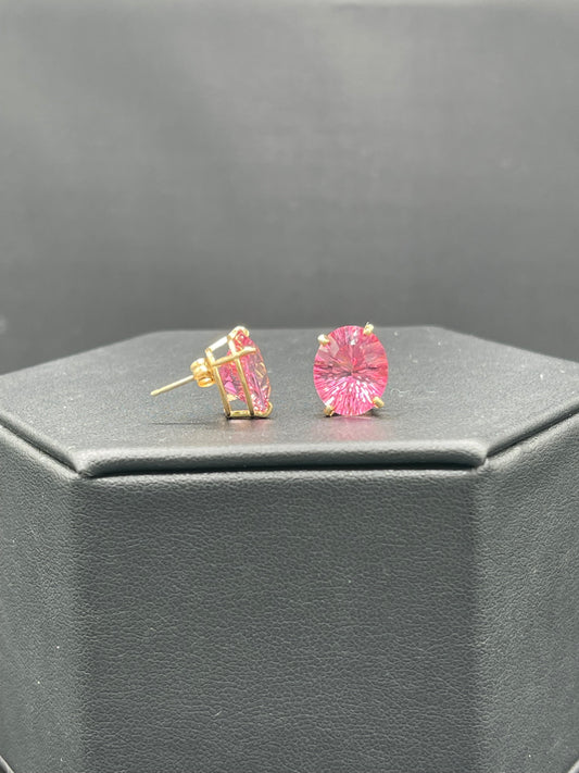 10 Carat Pink Mystic Topaz 14k Yellow Gold Stud Earrings