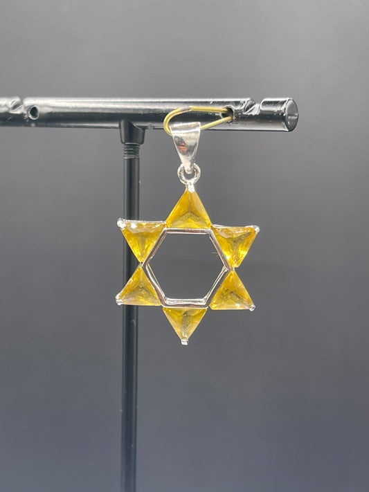 Natural Citrine Sterling Silver Star Of David Pendant
