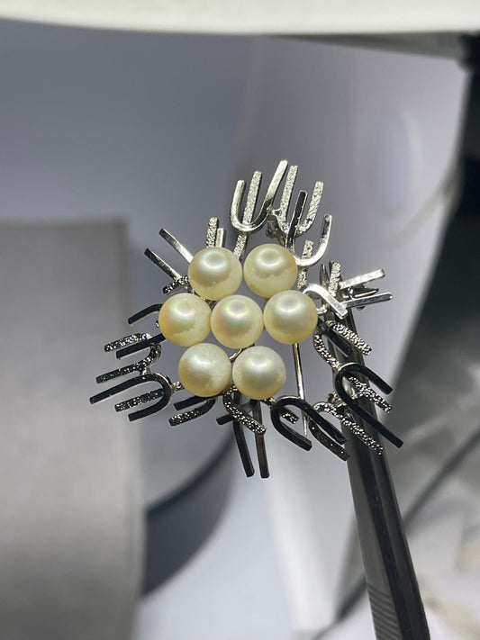 Natural Cluster Freshwater Pearl Sterling Silver Pin & Pendant