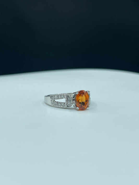 Natural Fanta Orange Spessartite Garnet & Diamond 18k White Gold Engagement Ring (Size 6.25)