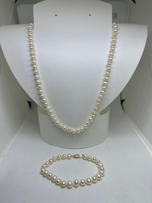 Natural Freshwater Pearl 14k Necklace & Bracelet Bridesmaid Set