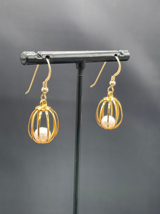 Natural Freshwater Pearl 14k Gold Filled Handmade Cage Dangle Earrings