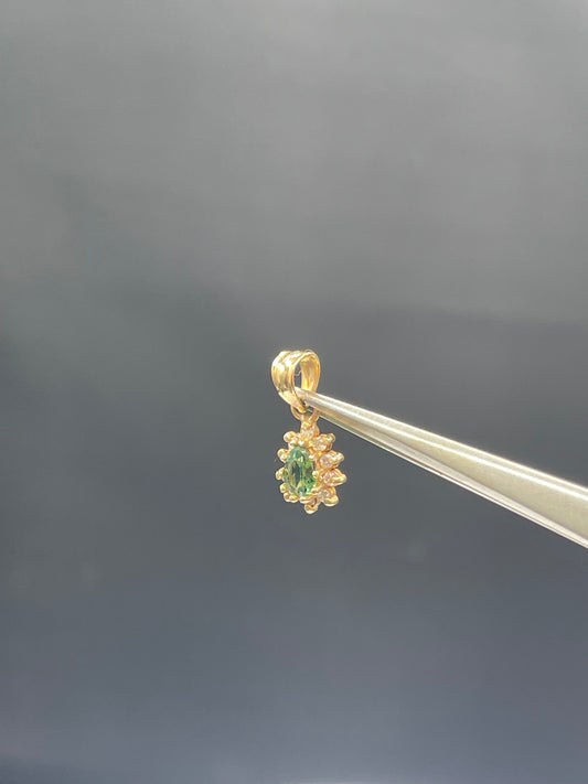 Natural Green Tourmaline & Diamond 14k Yellow Gold Petite Pendant