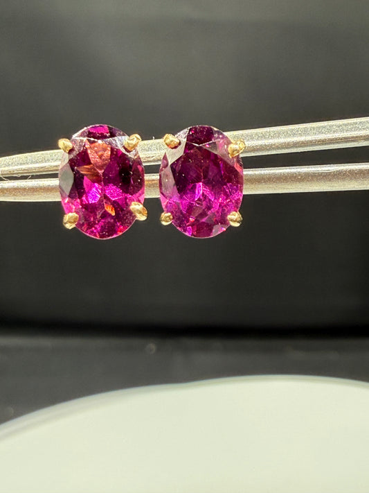 Natural Grape Garnet 14k Yellow Gold Stud Earrings | 2.90 CTW