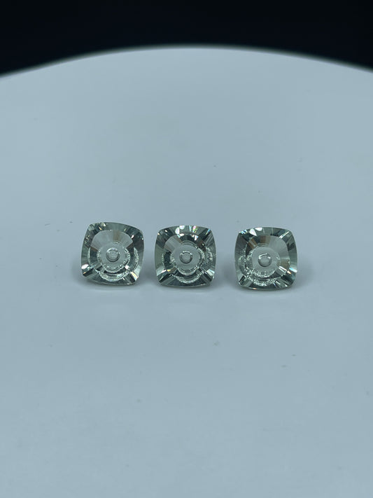 Natural Green Amethyst Circle of Light Square Cushion Cut Loose Gemstones, 18.56 Carats, Custom Fantasy Cut, Flawless, 12x12x6 MM