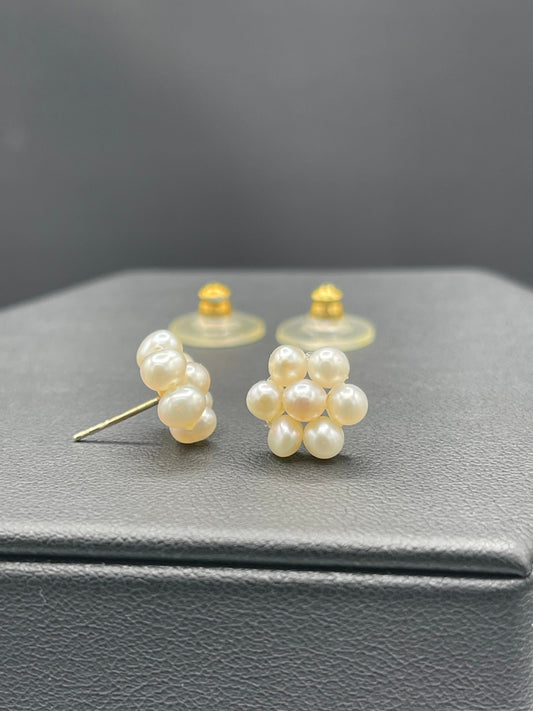 Natural Freshwater Pearl Cluster 14k Yellow Gold Earrings
