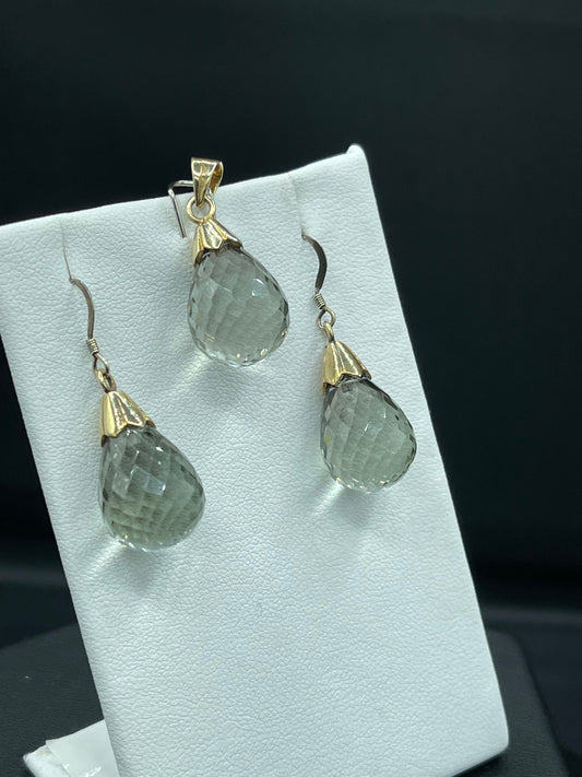 Natural Green Amethyst Briolette Sterling Silver Earring & Pendant Set