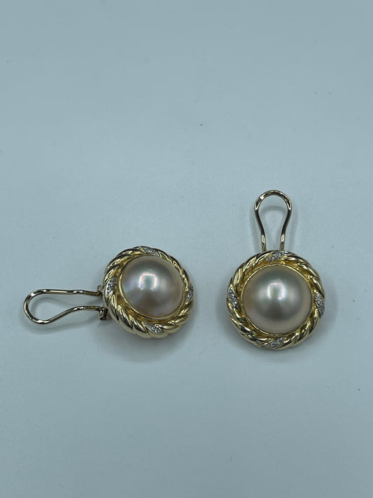 Natural Mabe Pearl & Diamond 14k Yellow Gold Omega Clip On Earrings